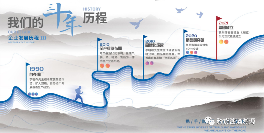 2017年—— 李明桥先生成立飞瀑酒业有限公司开始品牌化经营,并推出自有品牌“怀图酱酒”。