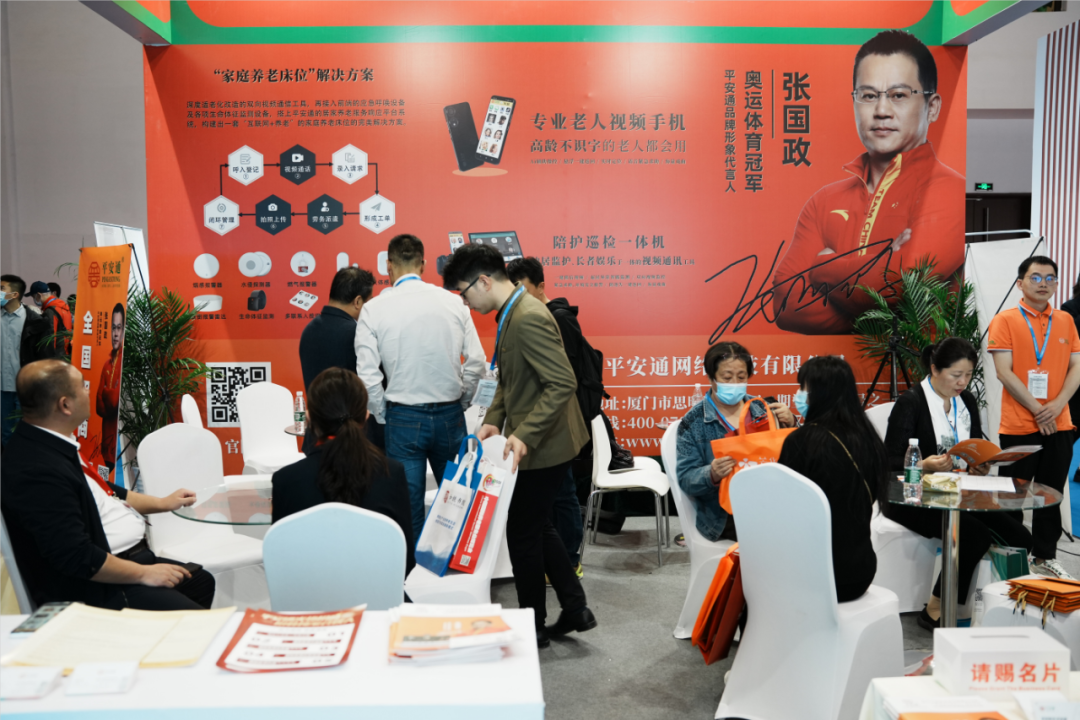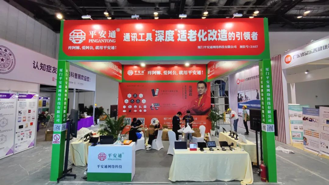 厦门平安通网络科技有限公司所在的3A07展位场面异常火爆,极具前瞻性的通讯工具的深度适老化理念,集软硬件、信息化平台于一体的丰富产品线,覆盖居家、社区、机构养老等各大应用场景的全套解决方案吸引了大量观众驻足。