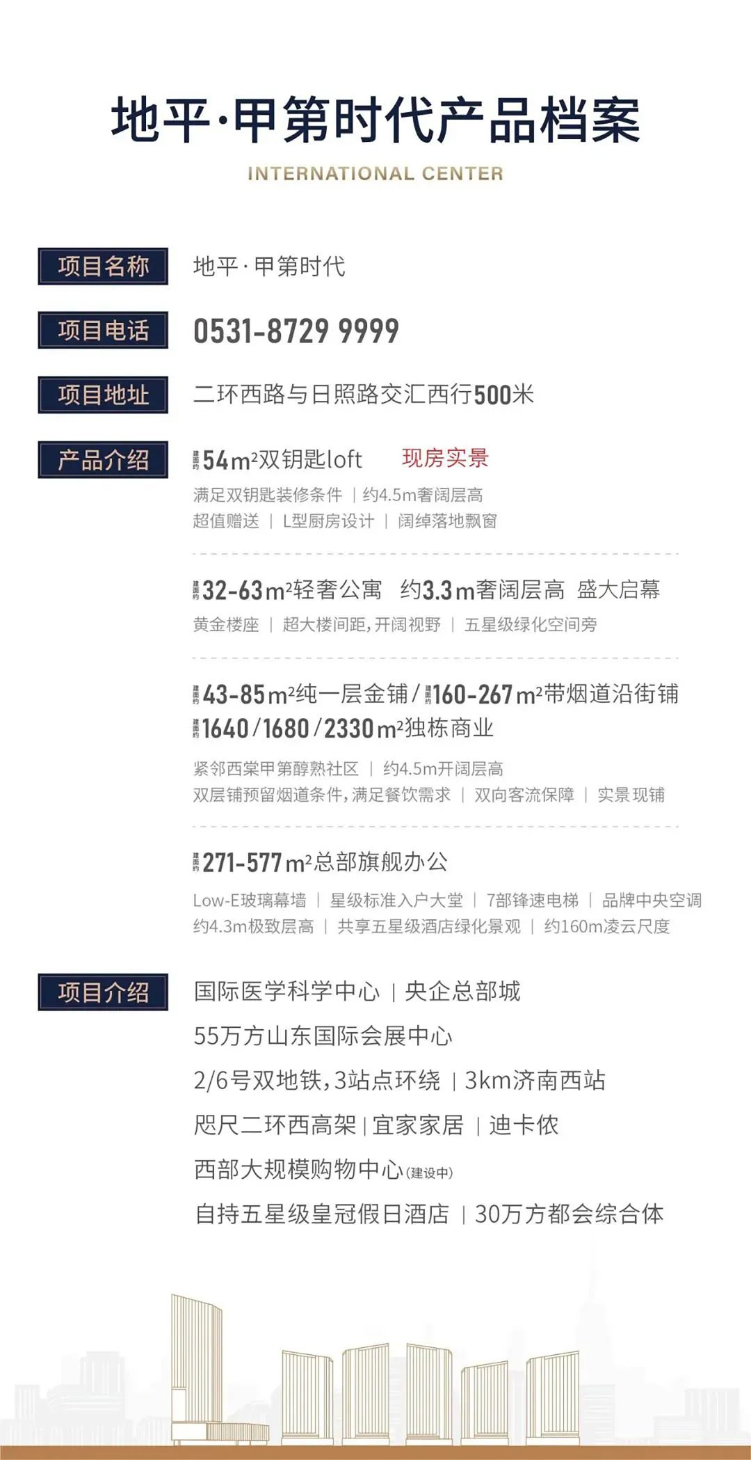 ◇ 百米直达2/6(在建)号双线地铁,三站点环绕,连接东中西三大交通枢纽,贯通济南东西部;距济南西站约3公里,1.5小时直达京津冀,3小时直达沪宁杭,促进城市内外的客流、物流和信息流的高速融通,助力商务精英人士便捷出行,天南海北谈生意,再远也不怕。