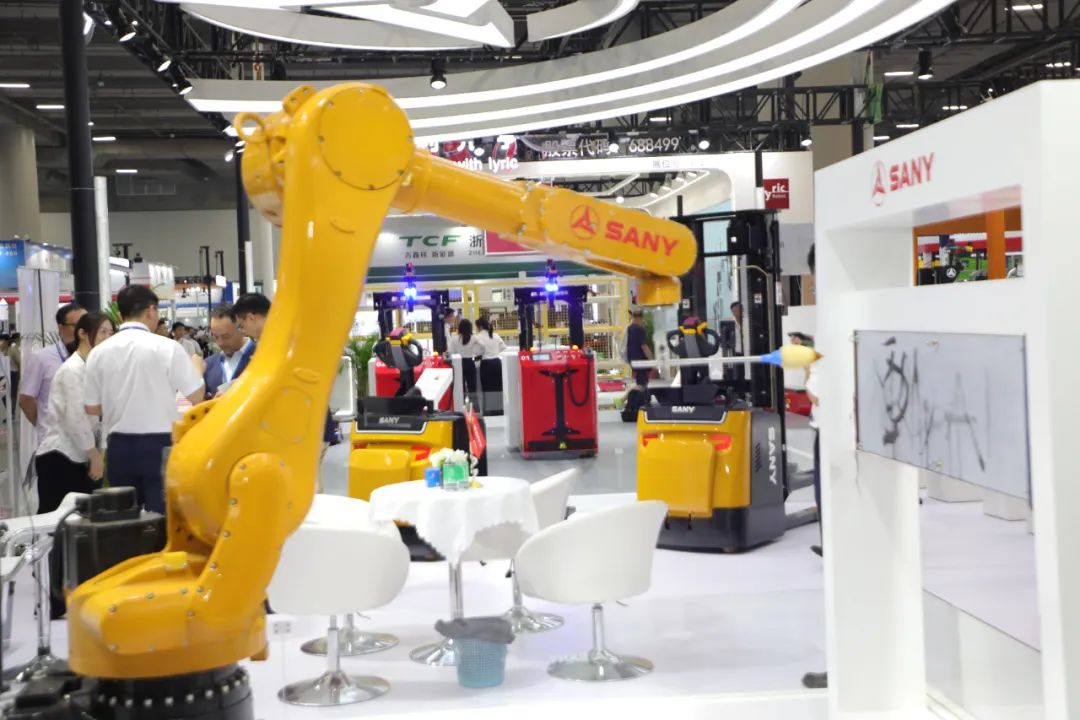 今年是三一机器人第二次参展,是本届展会占地面积最大的参展商。展出的设备类型相较去年更为丰富多元,涵盖电动叉车平衡重、搬运车系列产品,智慧物流AGV系列产品,系统集成工业机器人,一起参与本次展会,各显神通,人气火爆,实力圈粉。