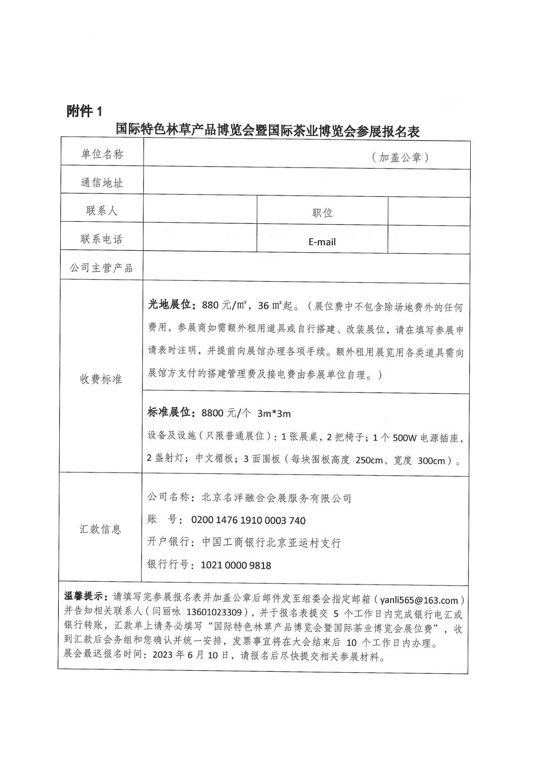 国际特色林草产品博览会暨国际茶业博览会参展报名表.docx