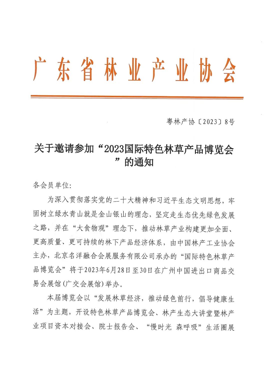 关于邀请参加“2023国际特色林草产品博览会”的通知