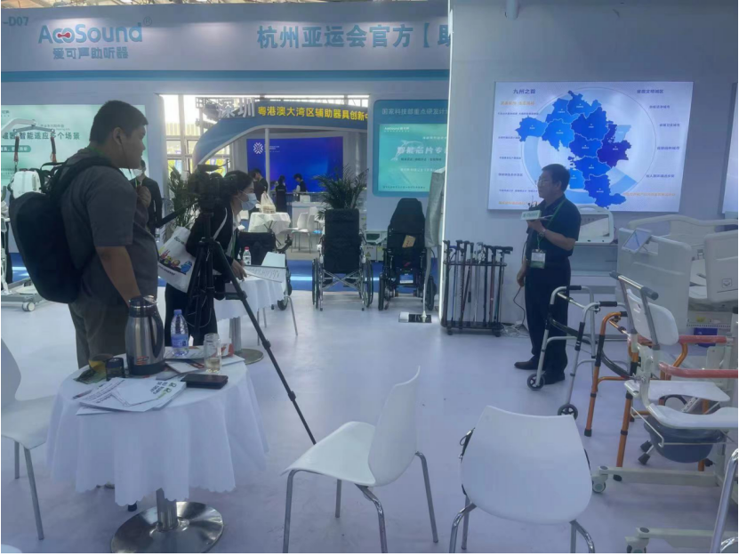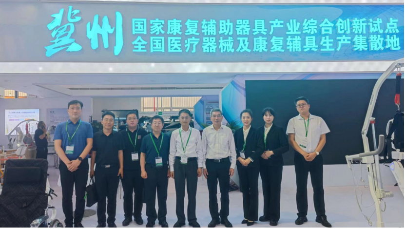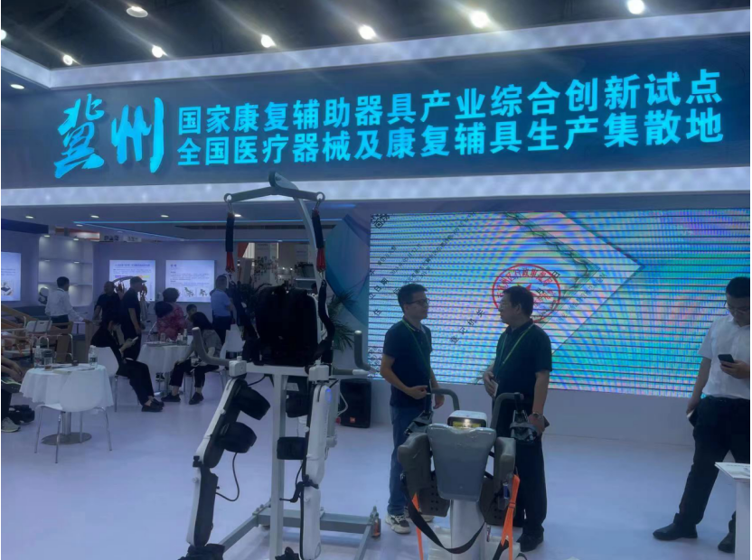 此次博览会到23日结束,展期三天。我区展台的主题是:国家康复辅助器具产业综合创新试点、全国医疗器械及康复辅具生产集散地—冀州。展厅设有康复训练设备、假肢及矫形器、助行移动辅具、无障碍设施等。我区展示产品包括骨传导助听器、坐便椅、骨头枕、艾灸床、提拉护板双摇床、电动移位机、颈椎牵引器、蓝印六支装、步态训练支架、空气波压力治疗仪、手动轮椅车等多种康复器具。