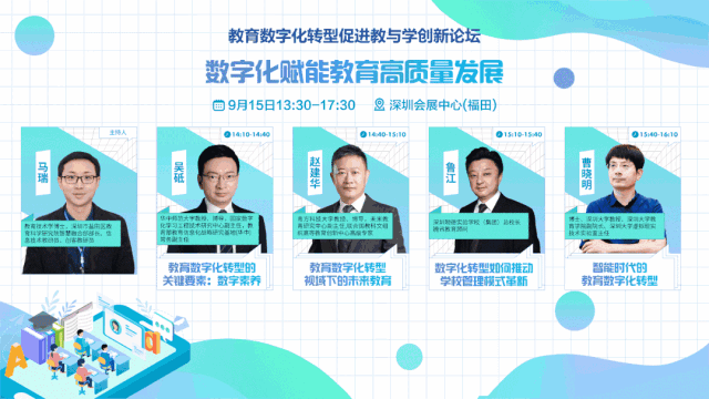 第五届深圳教育装备博览会同期将举办多场高端论坛,解读教育热点,聚焦行业风向,邀请国内知名专家、学者、企业家展开高峰交流讨论,展示前沿技术,分享实践成果,共谋全国教育高质量发展之路。