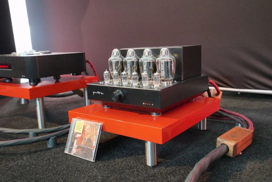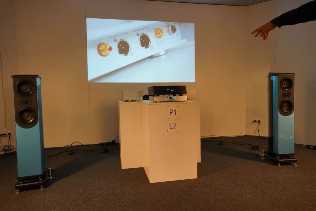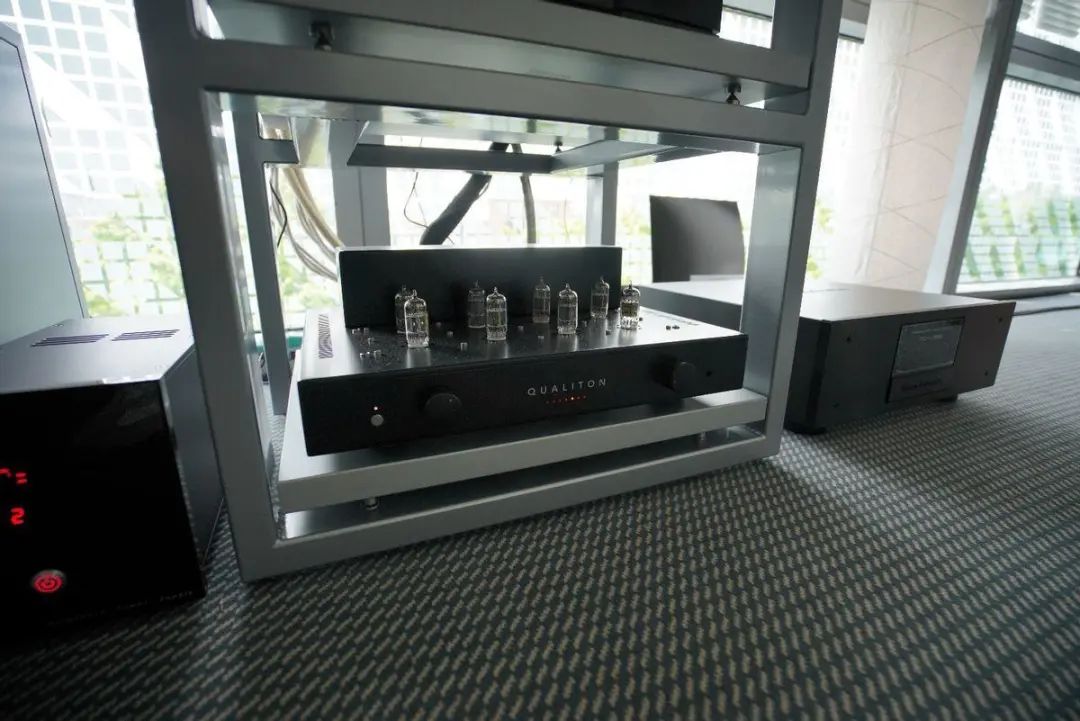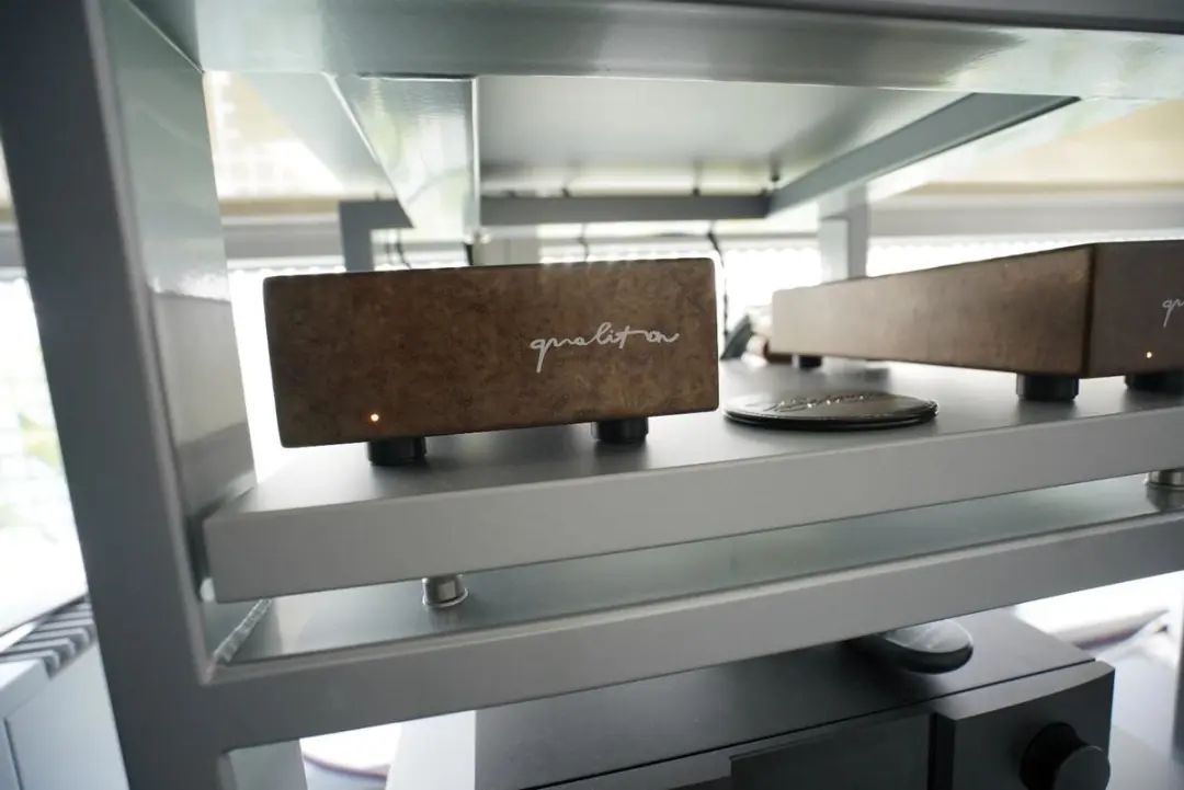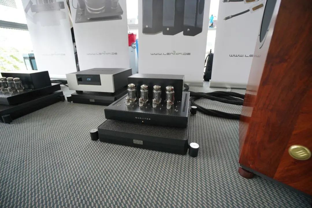 接下来就来到Audiohungary的两个演示房间。一个是采用了QUALITON CLASSIC经典系列的组合,一台C200前级,两台P200桥接后形成两个单声道功放。同时还用到Audiohungary自家的唱头放大器。