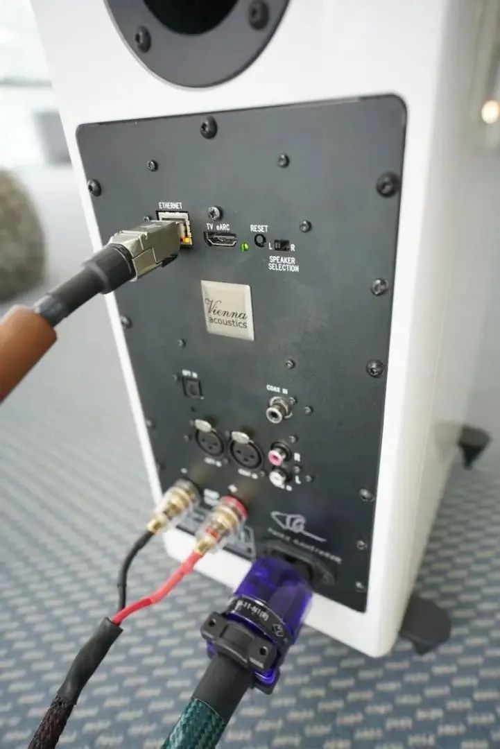 这对喇叭确实于众不同,它的名字是Mozart Infinity!它内置功放,内置串流平台。之需要插入电源和网络线,就可以播放Qobuz等网络内容。也支持Roon,Airplay。实在是非常神奇。