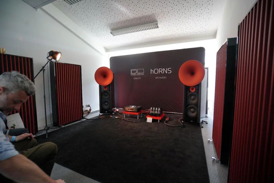 另外一间展房是用了一对hORNS的号角大喇叭演示。搭配的功放就是用了一台A75来驱动,虽然看起来不如刚才那么复杂。但是出来的声音确实让人印象深刻。
