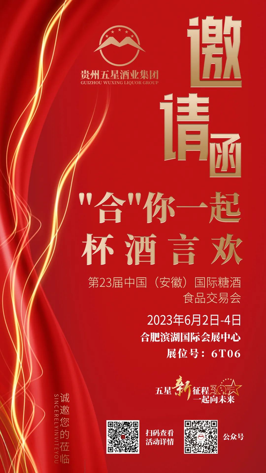 2023年6月2日-4日,安徽合肥滨湖国际会展中心6T06展位,五星酒业盛邀大家莅临现场,共品五星酱香,共谋合作发展。