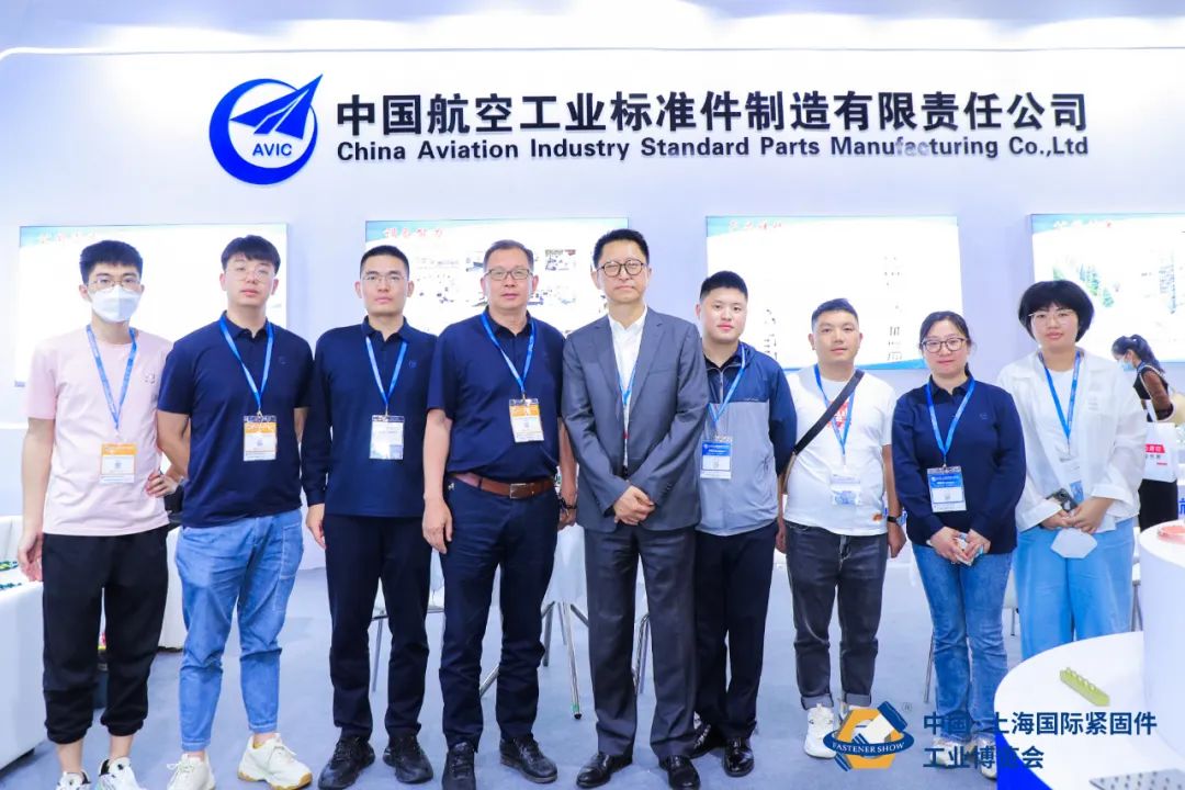 中国机械通用零部件工业协会副理事长、中国机械通用零部件工业协会紧固件分会会长薛康生(右五)莅临公司展台