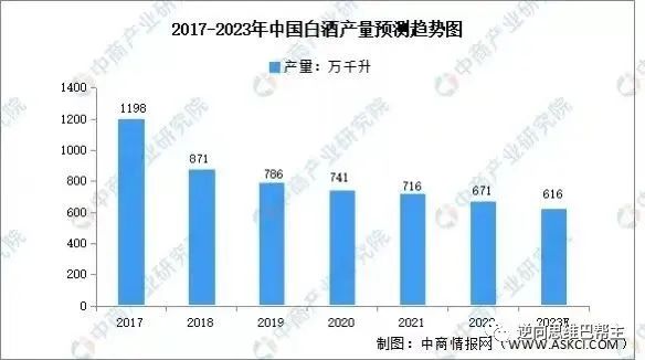 事实上,全国白酒产量数据趋势也说明了这一问题。数据显示全国白酒产量已经连续六年下跌,从2017年的1198万千升一路下跌到2022年的671万千升。
