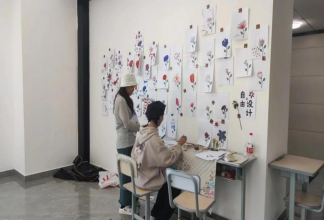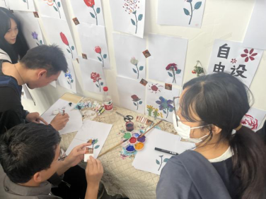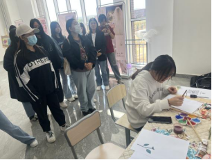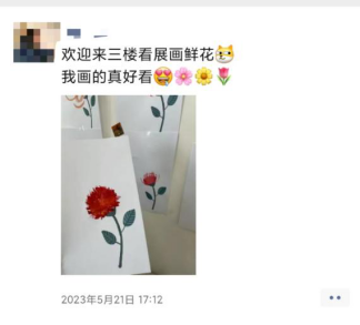 在展览过程中,路过的同学们自发地参与到展览互动环节的设置中,纷纷拿起画笔画出心中最美的花朵。