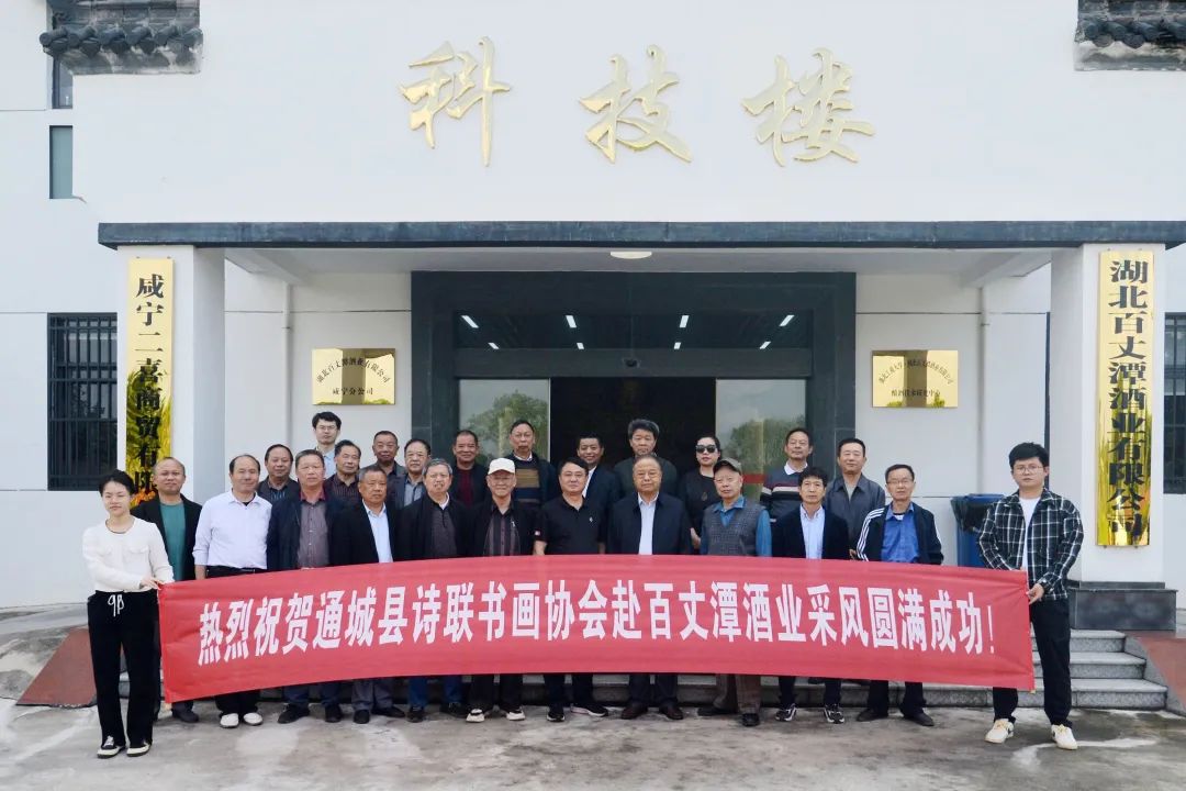 2023年5月24日上午,阳光明媚,初夏还带着徐徐清凉的微风,夹着酒散发出的纯香,飘逸在百丈潭酒业有限公司绿油油的生态环保厂区内,在各种草木盛开鲜花清香与酒花的芳香交织;迎来了通城县诗联书画协会30多位心有诗语楹花的执着客。