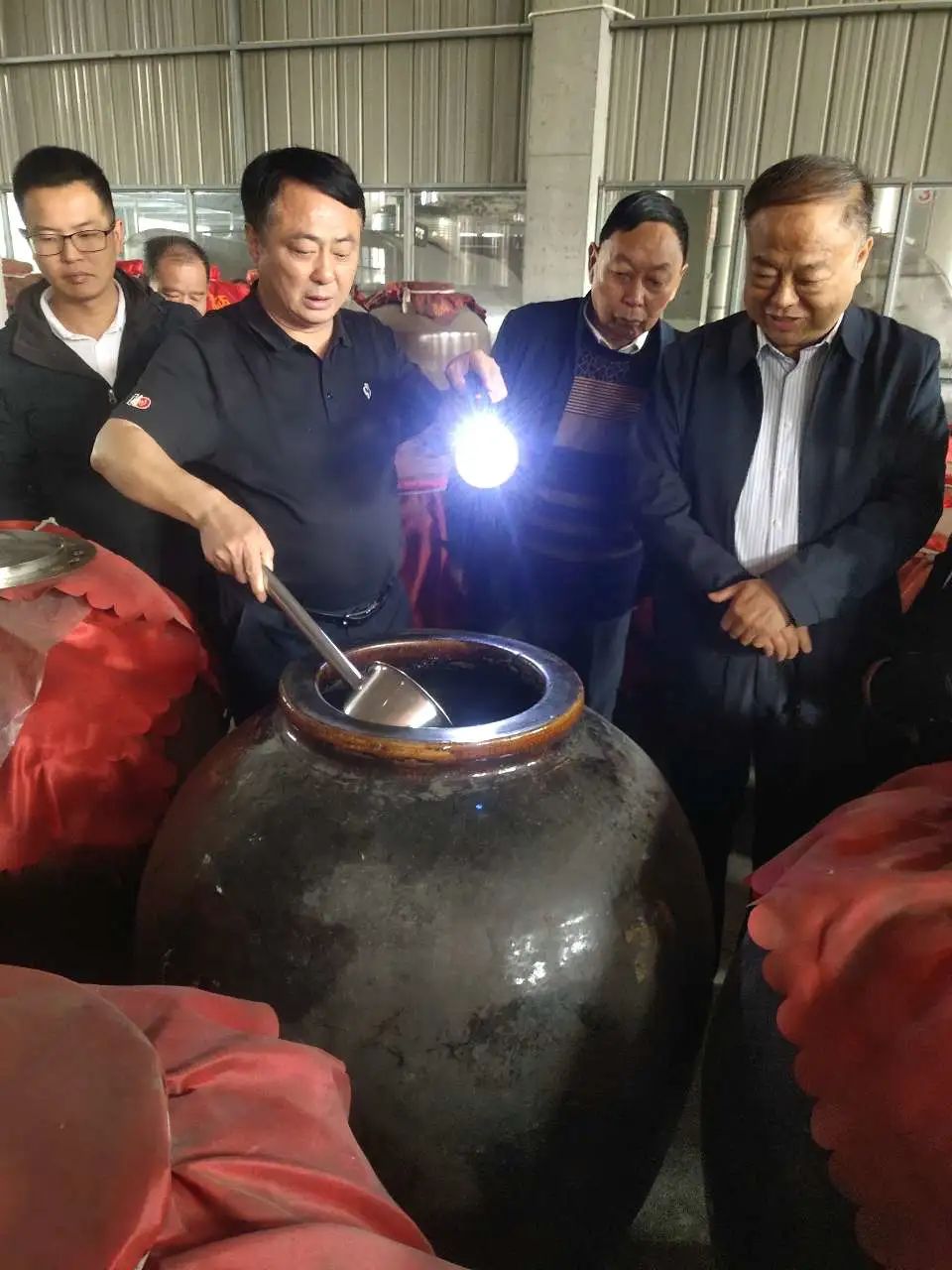 会长黎九龙率协会班子成员和各乡镇分会会长,在百丈潭酒业有限公司董事长黎时亮的陪同下,对公司酒业生产、储存、灌装车间进行了参观,黎时亮董事长亲自讲解酒业生产技术性知识,介绍公司生产、销售及前景设想与经营目标。围绕如何盘活百丈潭酒业这一“湖北老字号”名牌企业,作了深刻的企业策划剖析。使与会诗友对酒的生产技术和经营模式有了一个全新的了解和认识。也认知了创业者的艰辛与执着精神,了解到了“百丈潭”这个“湖北老字号”酒业品牌70年的漫长创业史;从过去记憶中的“炸蛋佗”到如今的“浓香型”百丈潭系列高档名牌酒;这是几代通城人奋斗的结果,留下的一份珍贵企业品牌遗产。从过去在城内只有几千平方米的厂区到现在拥有200多亩厂区,几万平方米车间,储存有几个亿价值的陈酒库存。百丈潭酒已畅销湘鄂赣毗邻县市市场。这是由黎时亮董事长为首的酒业团队精神努力奋斗结出的硕果。