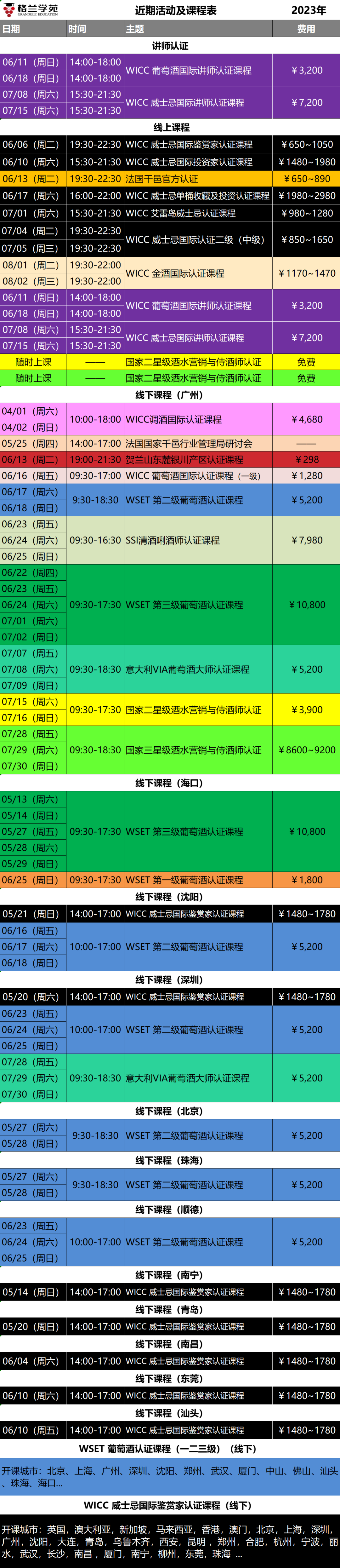 【WICC葡萄酒与烈酒国际认证课程】,己于英国、澳大利亚、新加坡、马来西亚、香港、澳门及北上广深等36个城市开课。
