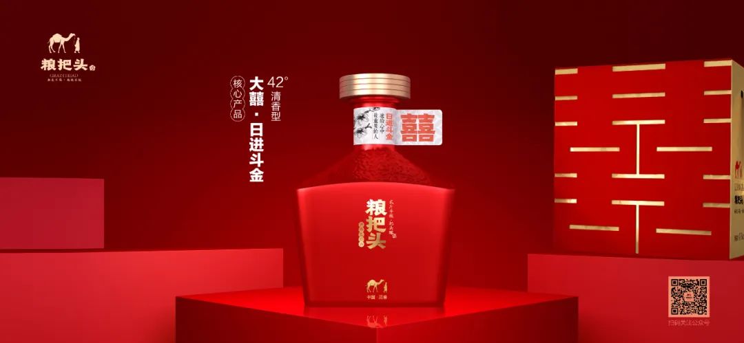 在产品上,粮把头巧妙地将流传500多年的晋商文化融入到产品设计之中,将其与中国传统美学相结合,频频打造出颜值与品质俱佳的好产品,持续为清香大品类和自身品牌赋能。以高端产品“粮斗”系列为例,将传统生活器物“粮斗”作为设计主体,与中国传统美学“水墨”、“青花”相结合,粮把头打造出一款融合了传统与现代审美的白酒系列产品,备受消费者青睐。