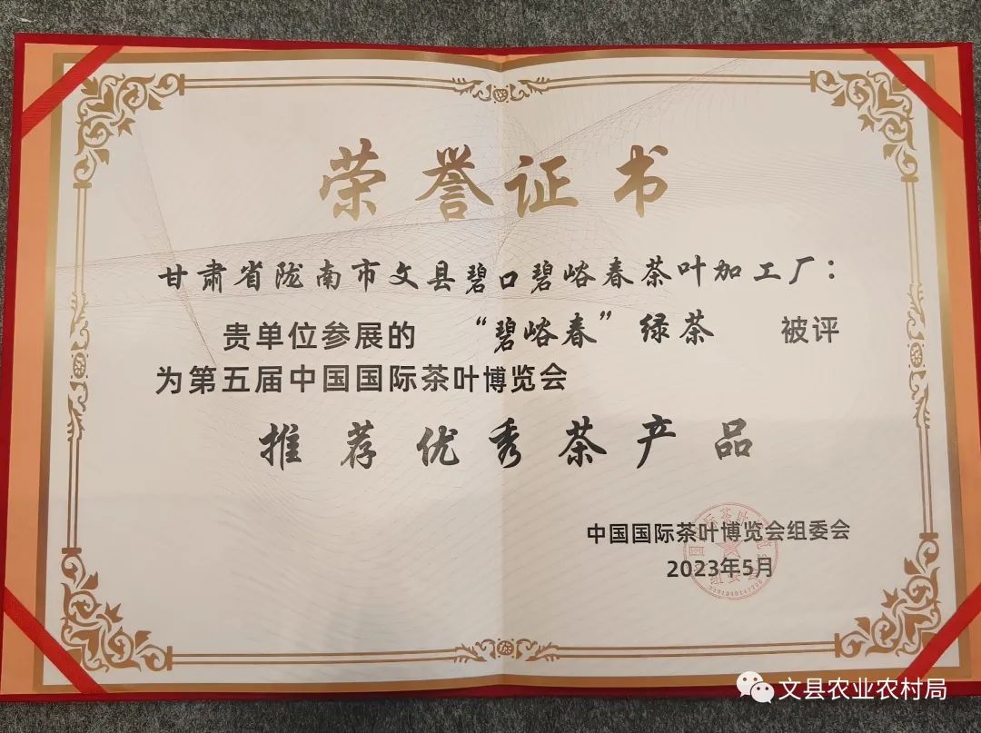 展会期间,甘肃展馆文县展位展出的系列名茶产品,吸引了广大参展商、消费者和国际友人的青睐。文县碧峪春茶叶加工厂参展的"碧峪春″绿茶被本届茶叶博览会评为"推荐优秀茶产品",该企业荣登博览会巩固脱贫攻坚成就特展区企业墙名录。