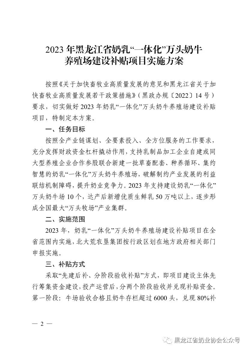 地方博览 | 2023黑龙江奶乳“一体化”万头奶牛养殖场建设补贴项目实施方案发布