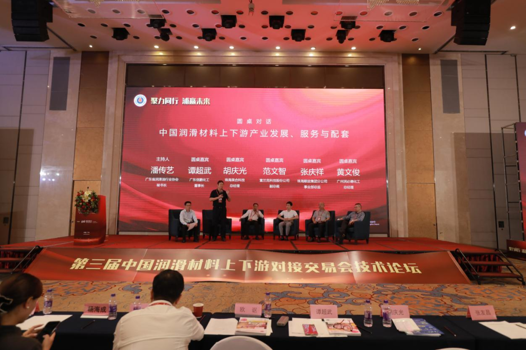 大会当天下午举行的“圆桌论坛”环节,由广东省润滑油行业协会秘书长潘传艺主持,广东信鹏化工实业有限公司董事长谭超武与其余5位嘉宾一起就围绕“中国润滑材料上下游产业发展、服务与配套”的主题展开精彩的探讨与对话。