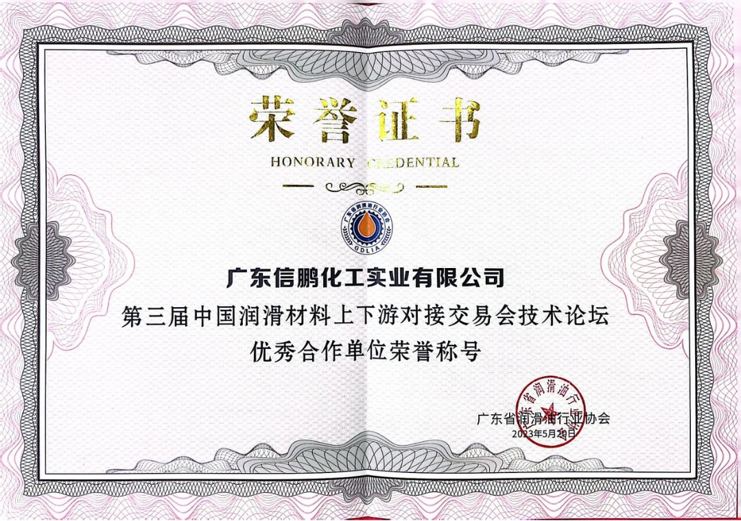 此次会员大会上,我司获评“优秀合作单位”。不仅是对信鹏化工多年来持续进行科研创新的肯定,更是对我司在润滑油行业作出的突出贡献的认可。我们将继续秉持“以人为本 诚信立业 合作共赢”的经营理念,致力于为合作伙伴与客户提供更优质的产品和更贴心的服务,不断提升工作效率和服务水平,坚持高水准、高质量管理,不断完善和发展,将每一项工作做实做细,全力提供更优质的客户服务体验。