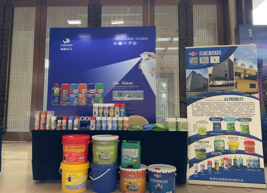 作为广东省润滑油协会的会员单位以及本次活动的特别支持单位,广东信鹏化工与深圳建儒科技携手参与此次行业盛会,向广大嘉宾展示了过去两年来企业在研发创新方面取得的成果,其中包括了各种多元化的工业类的特殊气雾剂与线切割产品:全系列的清洁剂、润滑剂、阻蚀剂、涂料保护剂、脱脂剂以及专为有特定维护与维修需求的客户所设计的特殊产品。