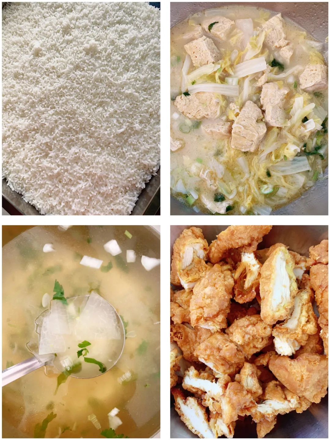 香酥炸鸡排、白菜炖豆腐、冬瓜汤