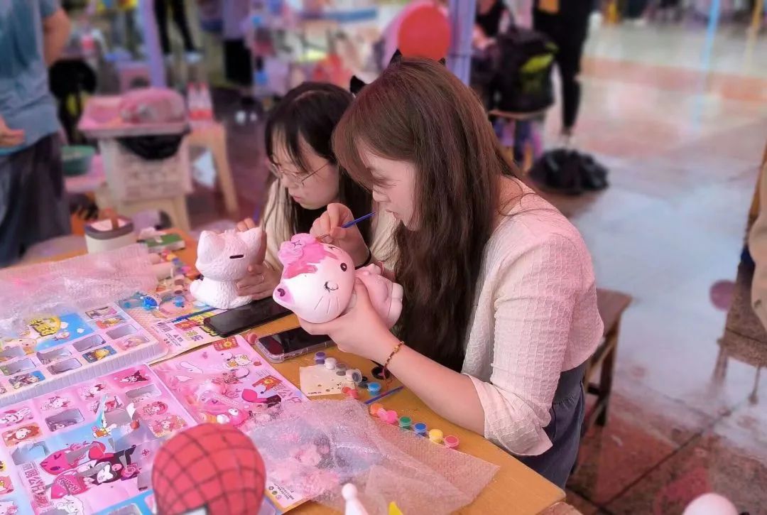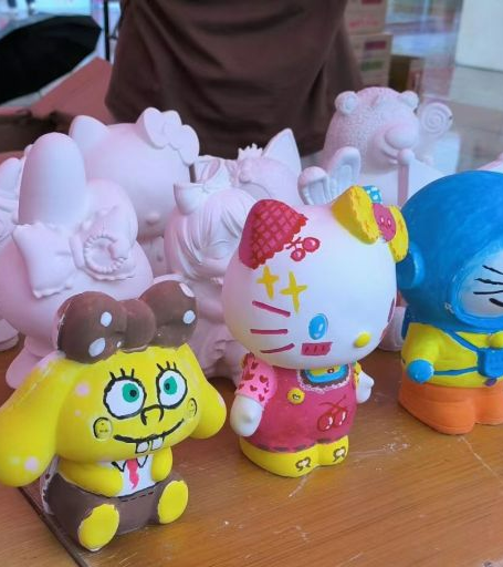 各种各样的石膏娃娃摆放在那,等你来绘画,为同学们实现了不出校也能涂画的机会,感兴趣的同学可以课下来看看哦。