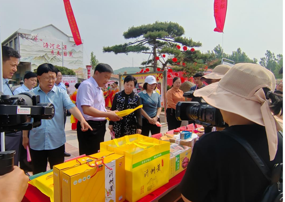 5月20日,圈里乡在贾姚庄广场举办了2023年特色农产品展销会,主要展销当地特色农产品,包括糯乳甜软的沙地蜜薯、香粘醇厚的丘陵小米、红甜脆爽的大棚油桃、满口酥香的圈里大饼等优质农产品,吸引了大批客商前来参展订货。其中,山东唐王坡农业有限公司现场与济南等地客商签订蜜薯、小米预订协议5份,销售额近200万元。