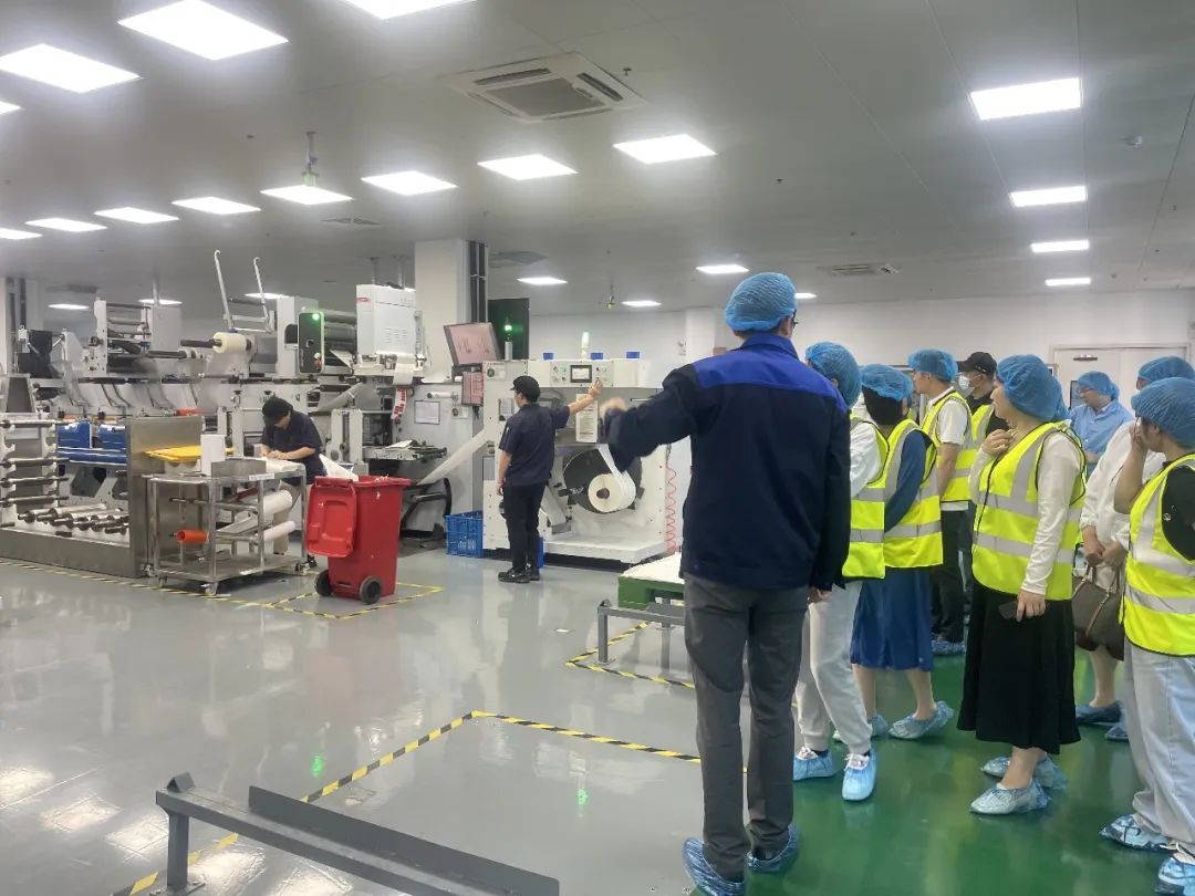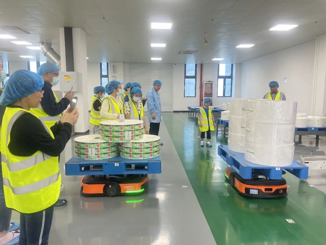 会后陈总和团队带领大家参观工厂的生产线,展示先进的数字化技术在包装制造中的应用。会员们惊呼于自动化流水线的高效运转和智能化设备的精准操作,见证了数字化工厂的产能和创新能力。工厂的现代化设备和整洁的生产线也给大家留下了深刻的印记象。