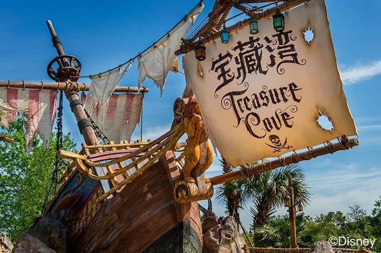 “宝藏湾”是全球迪士尼乐园的首个海盗主题园区,游客可以参与到杰克船长和戴维·琼斯的冒险中。在“加勒比海盗——沉落宝藏之战”中,游客可以登船开启一段激动人心的旅程,通过载乘系统、机器人、动画、布景及多媒体中的尖端科技体验扣人心弦的情节。富有探险精神的游客还可踏上海盗船,泛起“探险家独木舟”游向美丽海湾,并在“巴波萨烧烤”大快朵颐。特技表演“风暴来临——杰克船长之惊天特技大冒险”将以创新技术让观众大呼过瘾。