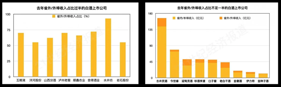 那么,一些地方名酒面临一线名酒下沉和省外友商分羹,深耕本省市场、守住根据地也成为一些地方白酒的经营策略。但更多的地方名酒是走出去,还有一些白酒上市公司采用多地区、多品牌、多香型战略,来满足不同地区消费者对白酒的不同偏好,从而实现收入全国化。