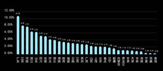 据相关数据显示,广东、江苏、河南、浙江、山东、四川、安徽、河北、湖北、湖南成为酒饮热度前十的省份。白酒消费的热度深刻影响着酒业市场的热度,白酒的繁荣影响着酒业市场的繁荣。白酒热度与地方经济的发展成正比,广东和江苏最能喝,白酒的消费热度呈现为“南强北弱”的态势。