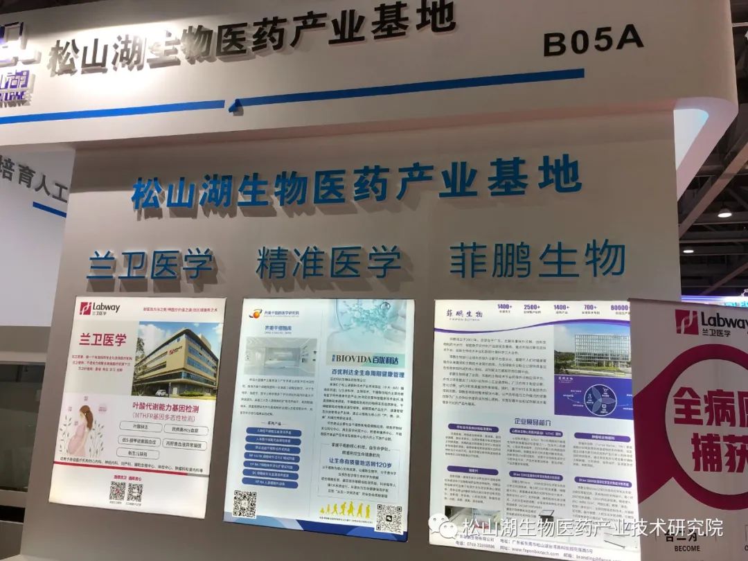 松山湖现代生物医药产业技术研究院会同松山湖生物基地专班,积极组织菲鹏生物、兰卫医学、博工医疗、中大365、科学智汇城等生物医药企业和产业园参展,围绕精准医学等领域精准招商,深化产业链上下游合作。