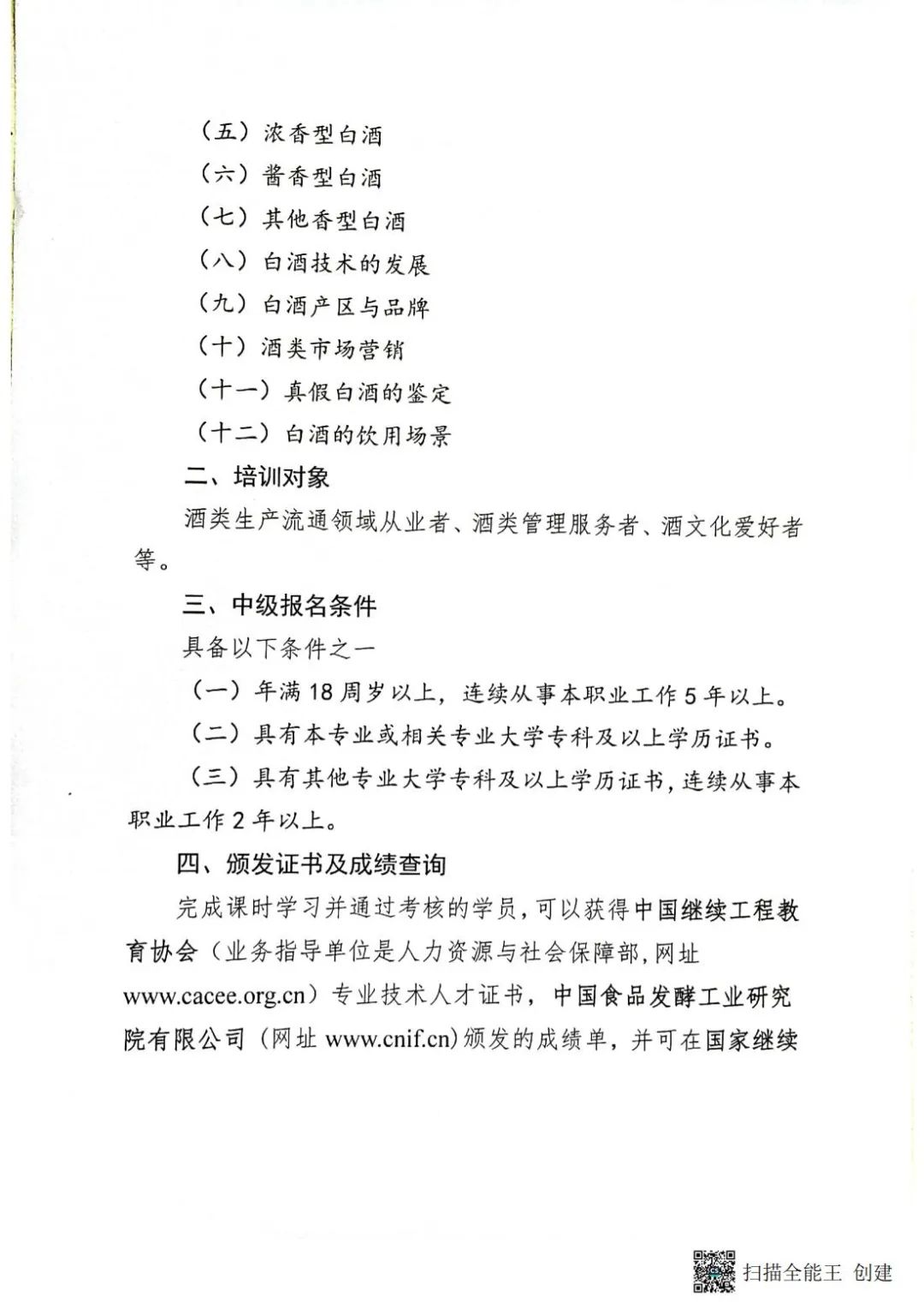 《白酒品鉴师》通过考核的学员,由中国继续工程教育协会(业务指导单位为:中华人民共和国人力资源和社会保障部)颁发专业技术人员培训证书,并可以在其主办的国家级网络服务云平台——国家继续教育公共服务平台查询考试成绩。中国继续工程教育协会成立于1984年, 是人力资源与社会保障部业务指导的促进专业技术人员继续教育事业发展的学术性、全国性、非营利性社会组织,是“国家级专业技术人员继续教育基地”,协会秘书处设在中国高级公务员培训中心继续教育处。