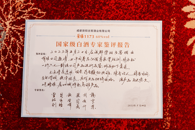 国家级专家品鉴会上,崇陽酒得到了与会专家的一致好评。国家级白酒专家曾组训、胡永松一行六人对“崇陽1886”52度浓香形成如下鉴评意见:“无色透明、窖香优雅、粮香舒适、圆润绵甜、自然谐调、落口爽净、回味怡畅,浓香型白酒风格典型。”