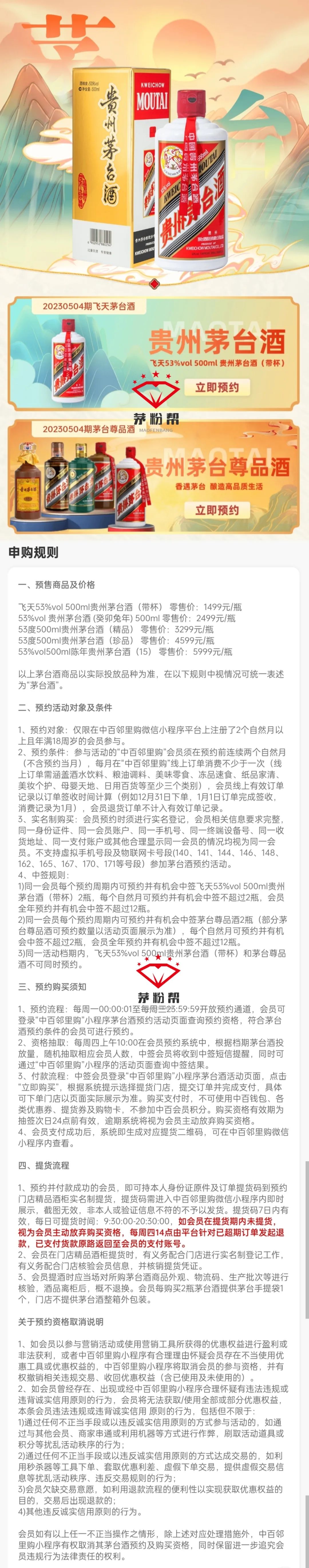 ①、扫码关注茅粉帮、每天更新撸茅线报及预约通道!