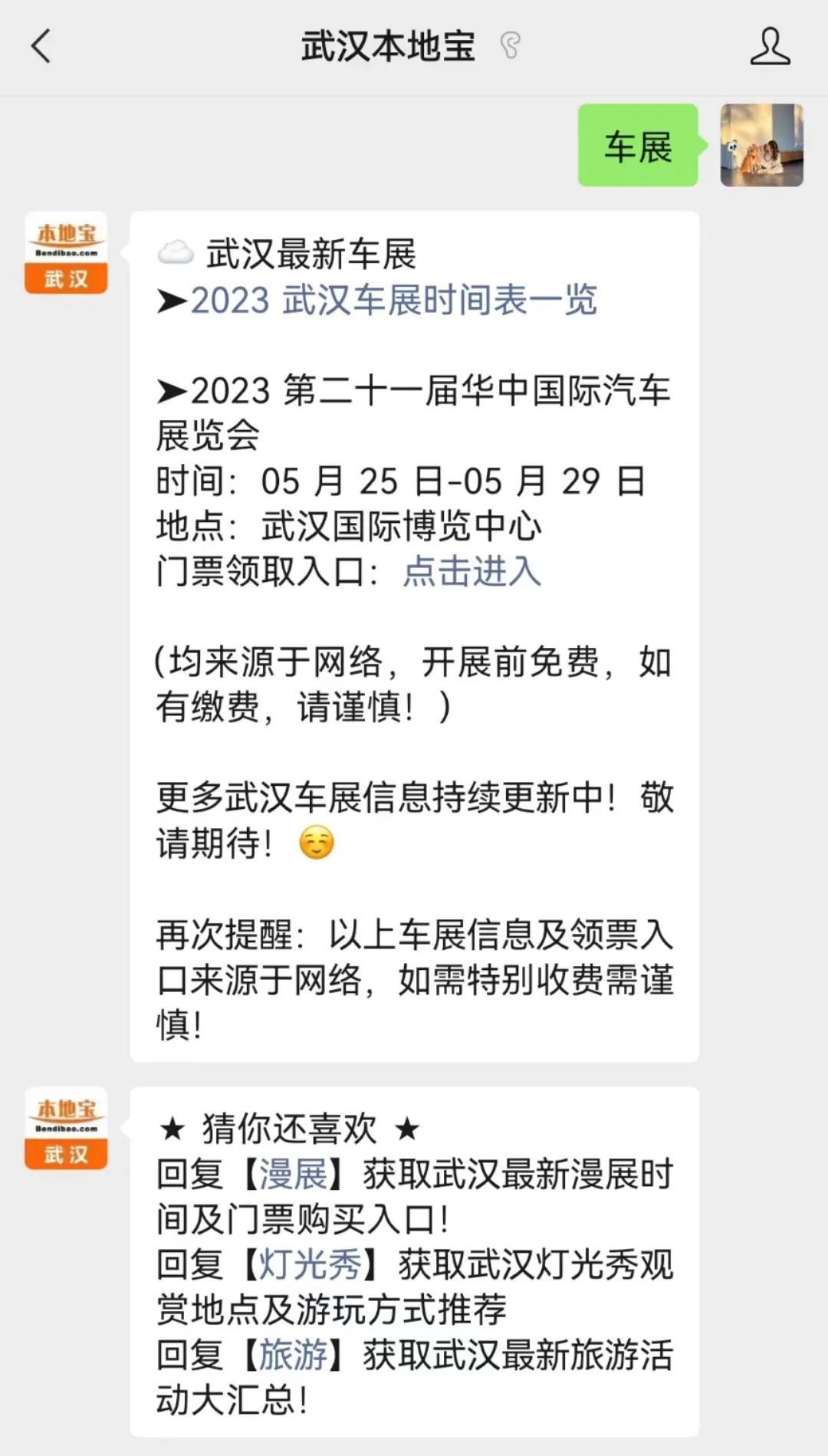 更多参展指南:点击下方名片,关注【武汉本地宝】微信公众号,在聊天对话框发送【车展】即可获得官方门票免费领取入口、展览分布及范围等详情。