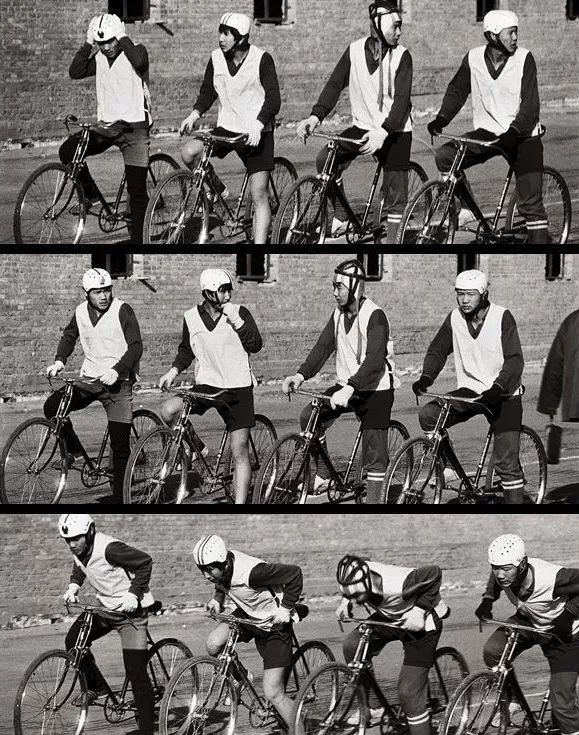 全国第一次“自行车场地赛”。这应当载入中国体育历史的史册了!虽然没有标准的比赛服装,但“运动员”是极其敬业的!