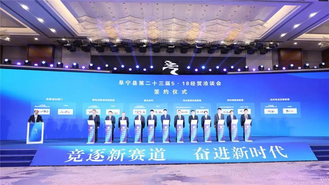 县委书记张利华出席会议并讲话,县委副书记、县长许根林主持。经贸洽谈会期间,阜宁县共签约工业项目37个,计划总投资超110亿元。其中,开幕式上签约的21个产业项目,计划总投资73.6亿元。南方科技大学党委书记李凤亮,中国税务学会副会长、浙江税务学会会长周广仁,中材科技股份有限公司副总裁、中材科技风电叶片公司党委书记、董事长庄琴霞,中国科学院自动化研究所研究员、自动化所东莞研究院常务副院长、中国科学院大学博士生导师熊刚,浙江双箭橡胶股份有限公司董事长沈耿亮等嘉宾参加现场活动。