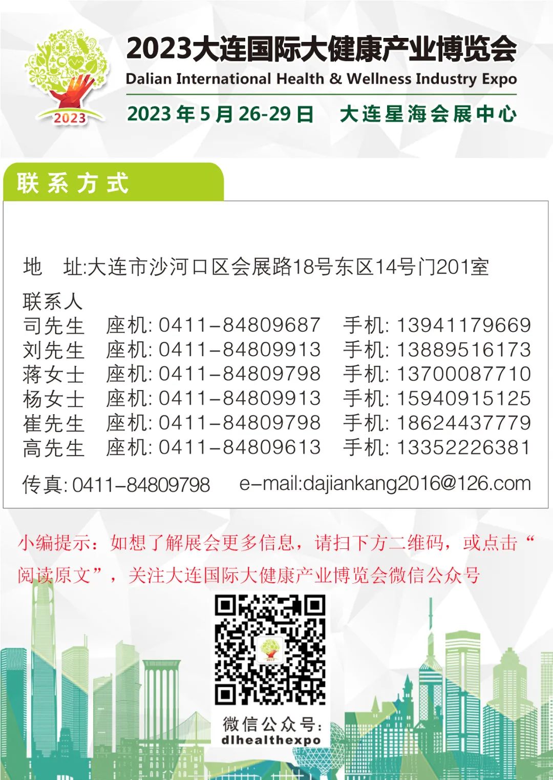 本届博览会5月26—29日在大连星海会展中心举行,知名品牌云集,海尔集团、贵州茅台集团、珍奥集团、爱尔眼科;区域知名医疗康养品牌:椒金山康养、蓝天养老、锦皓养老、松山颐养,棠梨养老、亿达养老、美尔口腔、康源堂中医、慈铭体检、春港康复科技、慧心源健康管理、席来乐护理床垫、民心科技、曦源护送等。