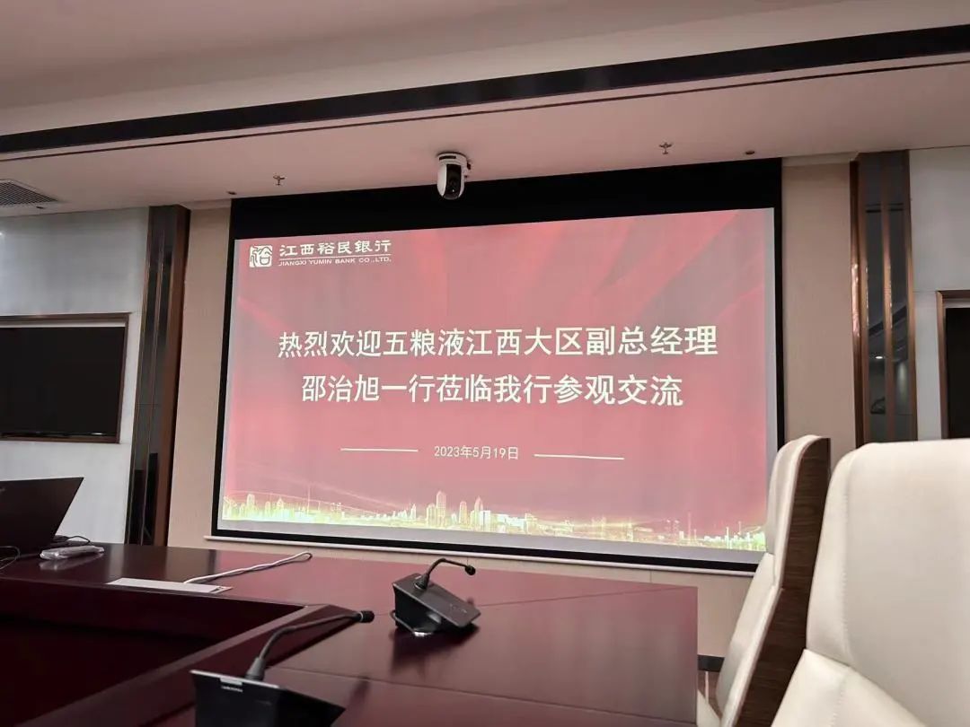 5月19日上午,五粮液江西大区副总经理邵治旭及江西东方盛礼酒业公司副总经理罗敏等人参观拜访江西裕民银行总部,开展“名酒进名企”座谈会及赠酒活动。