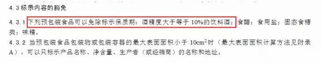 在《GB 7718-2011 食品安全国家标准 预包装食品标签通则》中,酒精度大于等于10 %vol的饮料酒并不要求标注保质期,因为在这个酒度以上,菌类基本难以生存。