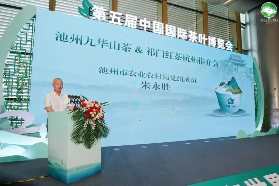 5月20日,第五届中国国际茶叶博览会在浙江杭州国际博览中心开幕,会期5天。安徽展区以“皖美徽茶,迎客天下”为主题,安徽省供销社和黄山、六安、安庆、宣城、池州5个茶叶主产市的茶叶品牌企业参展。池州市农业农村局共组织8家茶叶企业参展参会,并在杭州国际博览中心举办“池州九华山茶暨祁门红茶”品牌专场推介会。