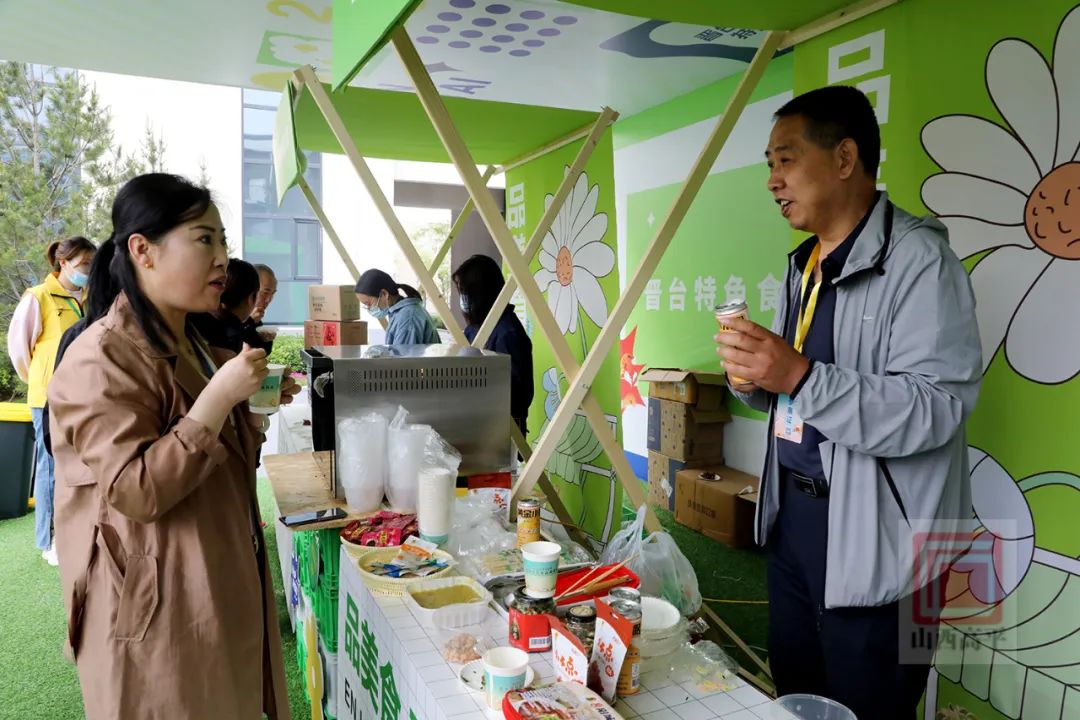 来到展销会现场,人头攒动、热闹非凡,晋台50家企业在展台前整齐摆放了台湾风味肉粽、鸡蛋仔、旺仔牛奶、平遥牛肉、阳城烧肝、山楂果酒、甜品马卡龙、黄芩茶、连翘茶、黄梨汁、红薯粉条、三个农夫坚果等特色优质产品,吸引了众多游客前来品尝舌尖上的美味。