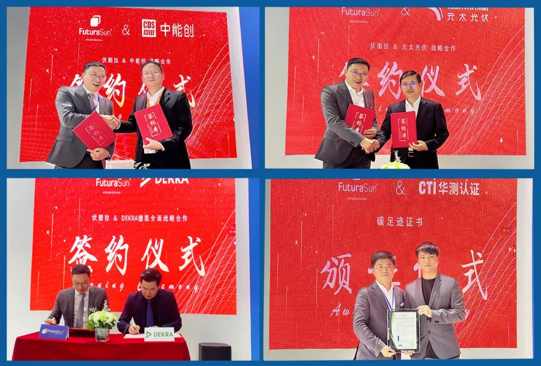 展会期间,伏图拉还与中能创光电科技(常州)有限公司、安徽元太光伏科技有限公司、DEKRA德凯质量认证(上海)有限公司签订了战略合作协议,华测认证为伏图拉SILK® Plus 组件颁发了碳足迹证书。伏图拉将与各合作方继续充分发挥各自优势,加大沟通交流,在深化业务合作、联合科研创新、共同开发市场,做到优势互补、资源共享、共同发展,共同推动构建清洁低碳的能源体系建设。