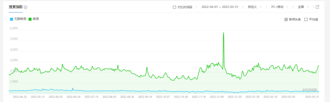 据魔镜市场情报,天猫淘宝平台近一个滚动年无醇啤酒销售额为1893.5万元,同比下降16.3%,跌幅与啤酒品类大体相似。据百度指数数据,无醇啤酒近一个滚动年搜索指数同比下降5%,日均值为262。相较于啤酒品类,无醇啤酒搜索热度较低,整体趋平。结合无醇啤酒的平台销售情况和社媒热度来看,大众对无醇啤酒的认知仍较为陌生,品牌或可在社媒营销侧加大投放力度,提升消费者认知。另一方面,目前无醇产品同质化严重,如何打出差异点是各品牌接下来关注的重点问题。