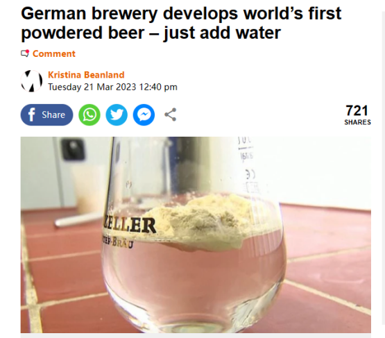 3.速溶啤酒打破场景限制,国内推行道阻且长。近日,德国一酒厂研发出速溶啤酒,并将于今年年底推向市场,只需加水搅拌就能获得一杯泡沫丰富的啤酒。目前来看,粉状啤酒的优点在于减少碳排放、运输成本低,这对品牌而言颇具诱惑力,加强品牌ESG宣传的同时还可以降低陈本。此外,粉末状的形式更便携,打破传统饮用场景的限制。但这一产品形态能否在国内流行,我们仍持观望态度。一方面,不同于咖啡日常化、刚需化,饮用啤酒更多的是为情绪、氛围买单,便携需求是否能打动消费者仍是未知。另一方面,消费者对啤酒味道要求越来越高,速溶啤酒的味道能否经受消费者的考验?在啤酒成为主流饮品之前,味道仍是消费者的核心考虑因素。