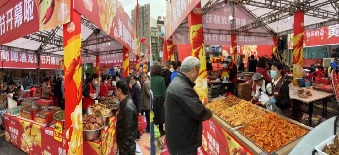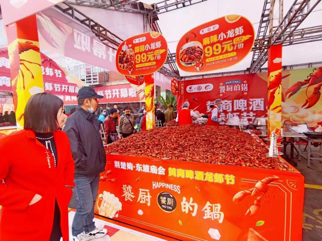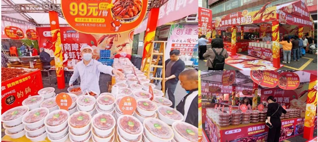 4月29日,啤酒龙虾节启动仪式开启,网红直播互动,现场火爆售卖,互动体验活动举行。