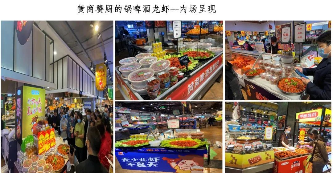 以饕厨の锅为主推,带动热闹场面,熟食除了小龙虾,还把卤制品大单品,卤牛肉、卤牛肚、卤猪脚、泡爪、毛豆、饕厨烤肠一起呈现出来。