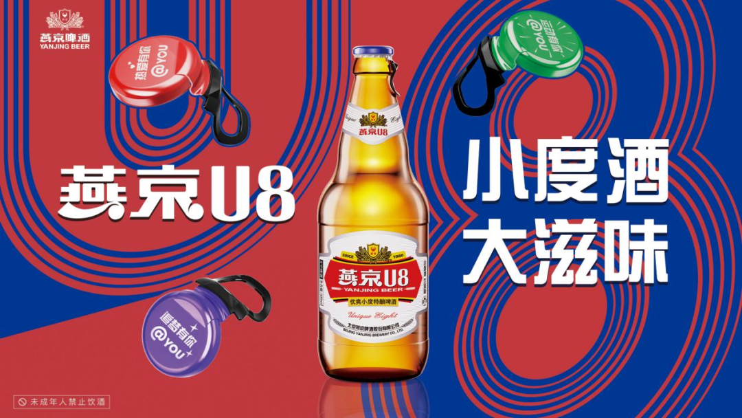 燕京啤酒不负韶华,不断变革,敢于创新,始终坚持“产品为王,质量为本”,致力将最好的产品带给消费者。在这种变革举措与精神鼓舞下,燕京啤酒品牌展现出了不一样的活力,燕京U8作为全国热销啤酒大单品,凭借着“小度酒大滋味,好喝不上头”的畅爽体验,深受广大消费者喜爱。2022年,燕京啤酒还将“有你文化”融入到U8限定彩罐、6色彩盖瓶等设计中,满足了年轻人自我表达、社群认同的新消费追求。不断地守正创新,让燕京U8焕发出独特品牌魅力。