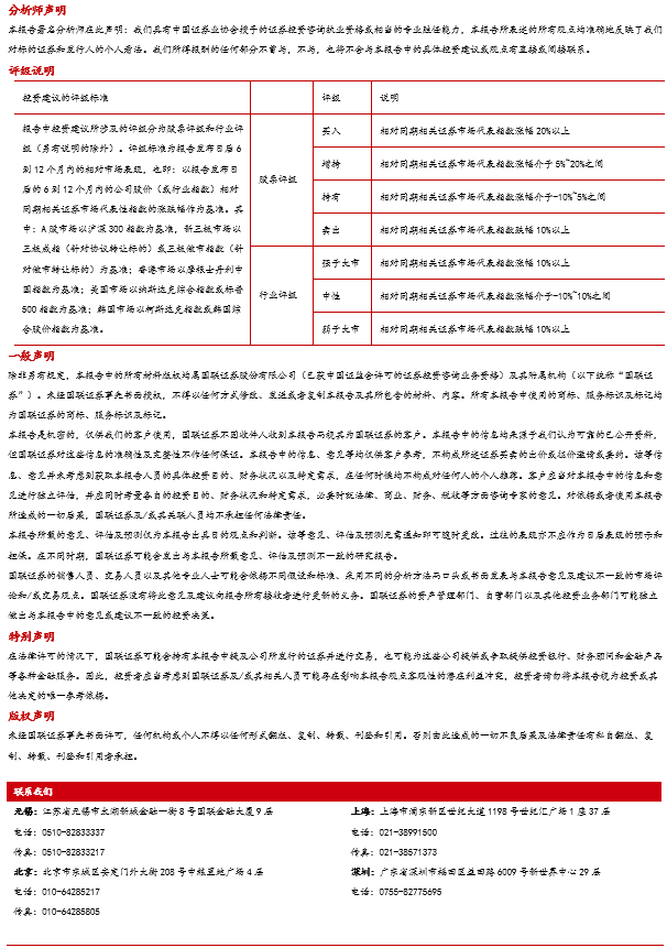 本微信平台所载内容仅供国联证券股份有限公司的客户参考使用。国联证券不会因接收人收到本内容而视其为客户,且由于仅为研究观点的简要表述,客户仍需以研究所发布的完整报告为准。
